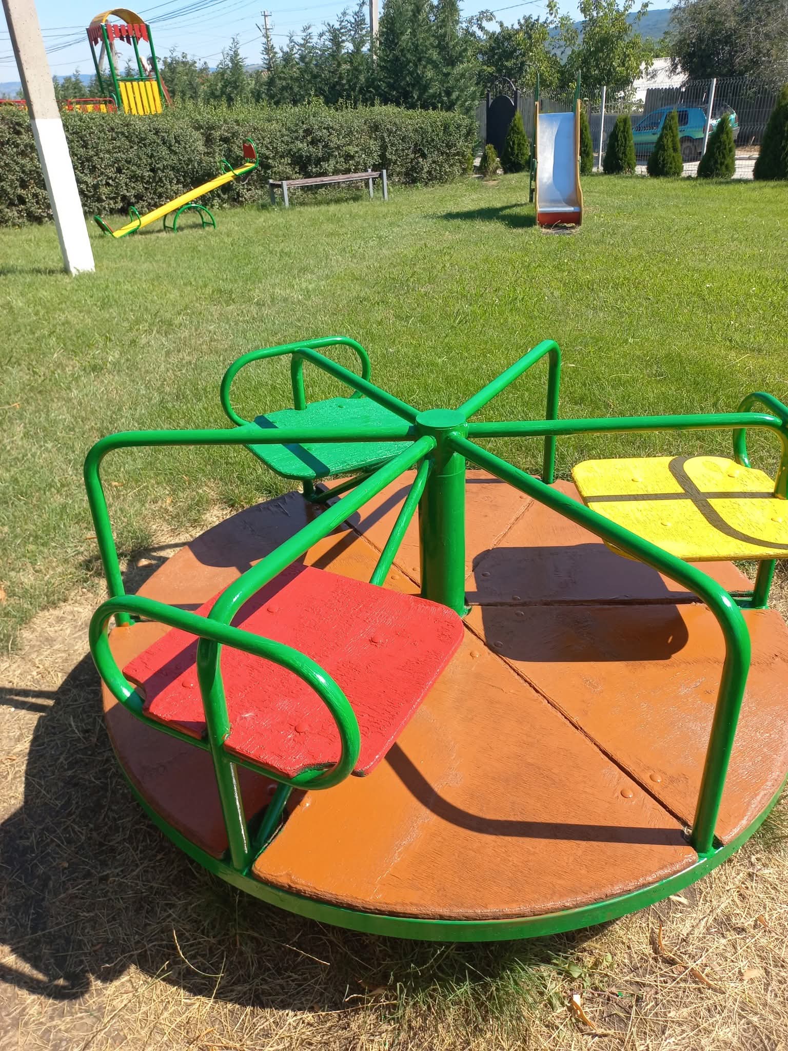 Instituţia dispune de o curte spaţioasă cu echipament şi instalaţii pentru joc şi mult spaţiu verde.